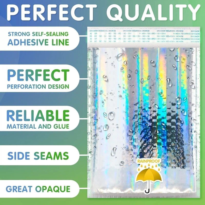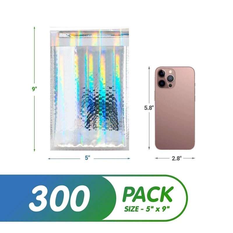 Hologram Metallic Bubble Mailers 5x9" 300 Pack Glamour Waterproof Self-SealSKU: AMIFF-M-300GHBM-5x9HO
