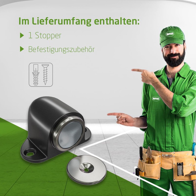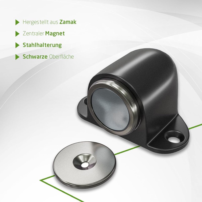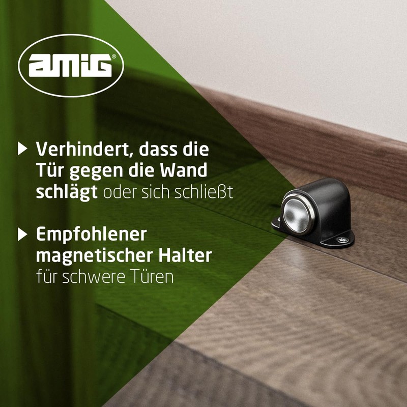 Amig - Magnetic Door Stopper | Holder with Strong Magnet | Easy Floor Mounting | Includes Mounting Material | Black | 44 x 40 mm | Zamak