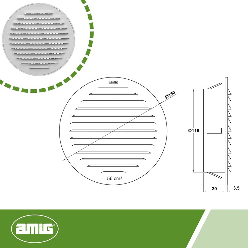 - DESCRIPTION: The Amig aluminium ventilation grille is an essential accessory for improving air circulation in your home or building. Thanks to its design, it easily integrates into any decor and is made from durable, resistant materials. The fine mesh allows for efficient airflow, keeping your space cool and comfortable. Additionally, it is easy to clean and maintain.
