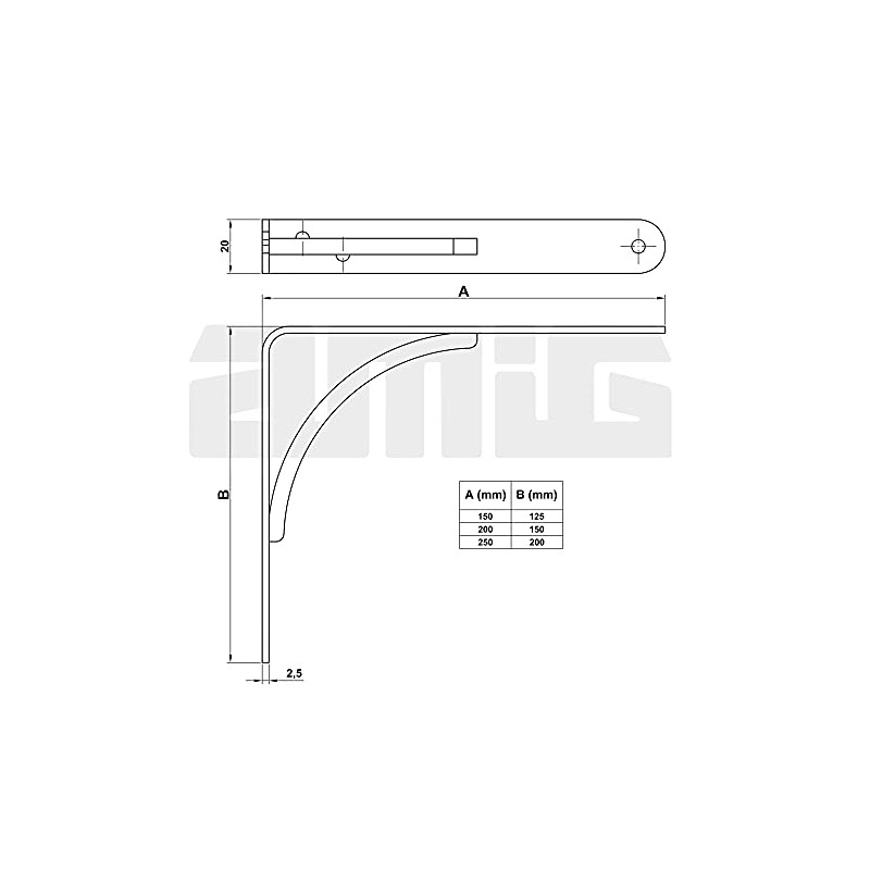 Amig - Shelf Bracket Stainless Steel Model 10 | Metal Bracket for Shelves | Shelf Bracket | Colour: Metallic Grey | Dimensions: 250 x 200 mm | Recommended Max Weight: 65 kg