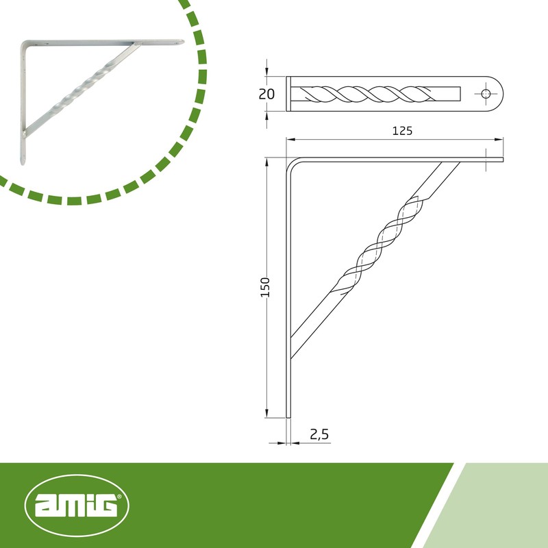 Amig - Shelf Bracket Stainless Steel Model 21 | Metal Bracket for Shelves | Shelf Bracket | Colour: Metallic Grey | Dimensions: 150 x 125 mm | Recommended Max Weight: 300 kg