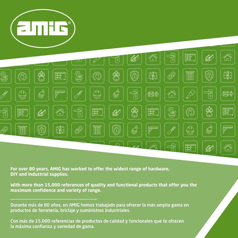 - Commitment: With almost 10,000 products available, we at AMIG have more than 80 years of experience in manufacturing and selling locksmiths, DIY supplies, ironware, forging products, garden supplies, household items, electrical products, professional range as well as occupational safety and safety products. All of the highest quality and reliability.