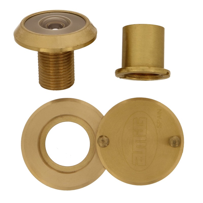 - DESCRIPTION: Door viewer with a super-wide angle brass lens for access doors to homes or commercial premises, suitable for both internal and external use. Easy to install and does not damage the surface, its wide viewing angle allows identification of one or more persons on the other side of the door.
