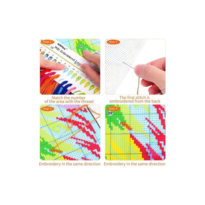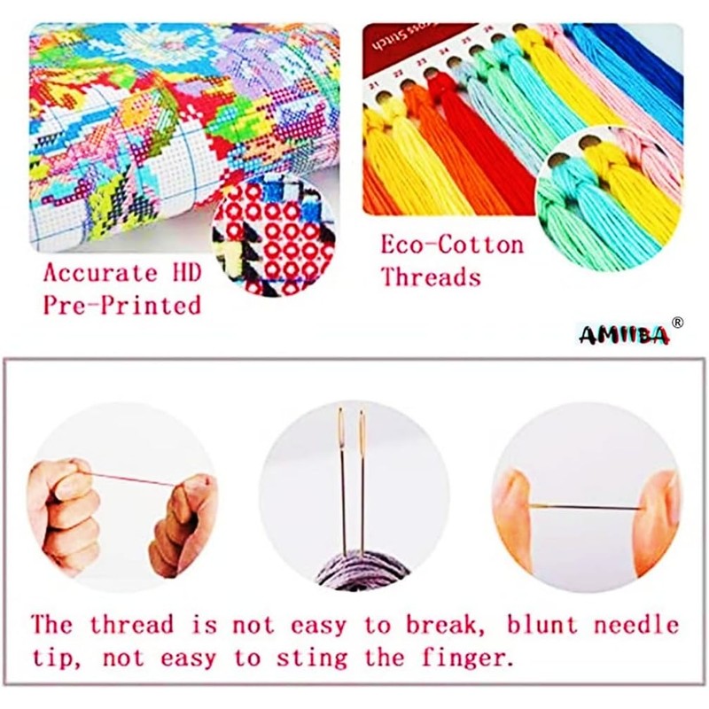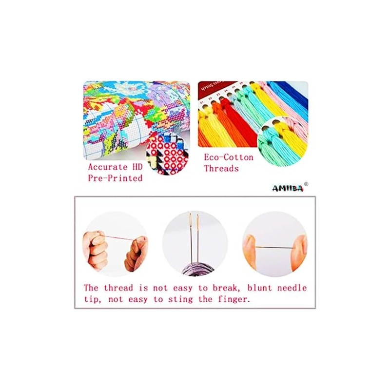What is Amiiba 14CT Stamp Cross Stitch Kit? 14CT means 14 count per inch of fabric Stamps means that the pattern is pre-printed on the fabric Compare to counted cross stitches the stamp is easier and requires less steps Beginners need to learn how to do full stitching and backstitching Our kit comes with a complete illustrated instruction in English Even beginners to finish stamp cross stitch easy to trust yourself Enjoy Package Content: 1 x Embroidered Fabric * 1 * Thread * 1 * 1 * Thread. set needle in English Instructions Tips: 1. Our items are frameless and not include the picture frame 2. Print pattern color does not match the actual color of the thread Always use the printed numbers or symbols to find a certain color 3. Fabric printing material is environmentally friendly and water-soluble to prevent color fading Please do not touch the water before finishing 4. To avoid damage the threads, please iron the artwork on the back of the fabric with a steam flat iron 5. Due to the light and screen Hope 6. If you have any problem, please feel free to contact us thanks