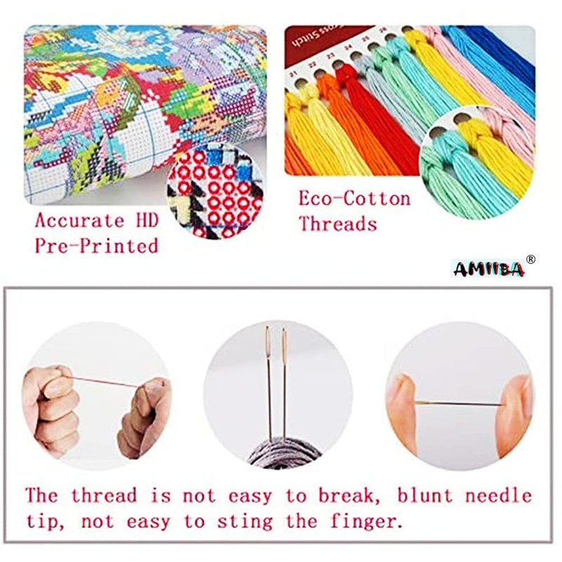 - Easy and Funny: 11 count stamped fabric size: 36×36 cm/14.2×14.2 inches. NO need to draw grids. High-definition patterns preprinted with nontoxic & washable dye