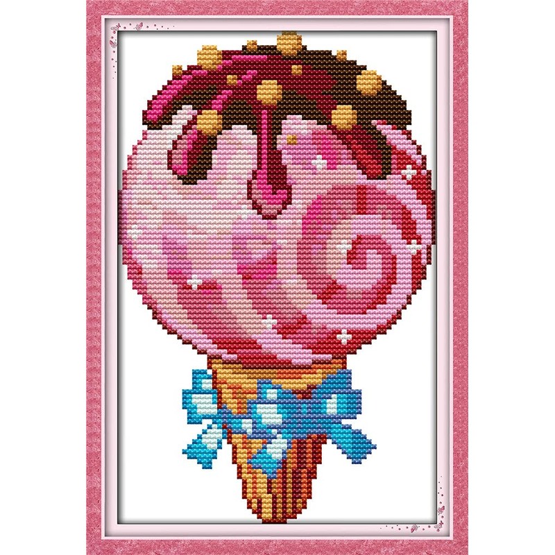 Amiiba Stamped Cross Stitch Kits, Cracked Biscuits Ice Cream Cone DIY 11CT 8.2x11.4 inch (Ice Cream)