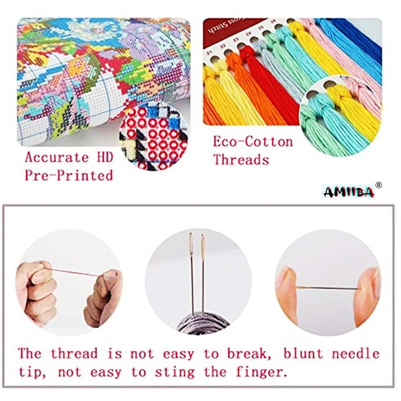 - 11CT Aida fabric size: 8.2x11.4 inch. High-definition patterns preprinted with nontoxic & washable dye