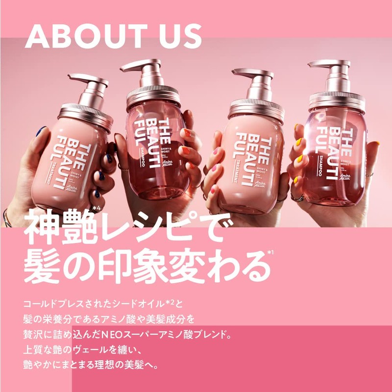 - *1 Complementing and texture of hair such as moisturizing and clumping *2 compared to our company *3 Prukenesian Avolilis seed oil, jojoba seed oil, terijabakk seed oil, screro carian villa seed oil, broccoli seed oil, watermelon seed oil [blended with amino mason shiny & moist shampoo]
