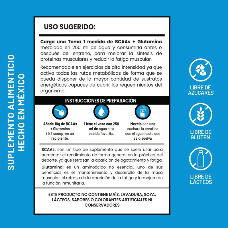 Alimenta tu cuerpo con la combinación perfecta de BCAAs y glutamina. Estos componentes mágicos no solo impulsan la síntesis de proteínas para un crecimiento muscular óptimo, sino que también actúan como una fuente de energía para tus tejidos. Ya sea que estés en el gimnasio, en el campo o en la pista, sentirás la diferencia con cada repetición y cada paso. 🏋️♂️🚴♀️