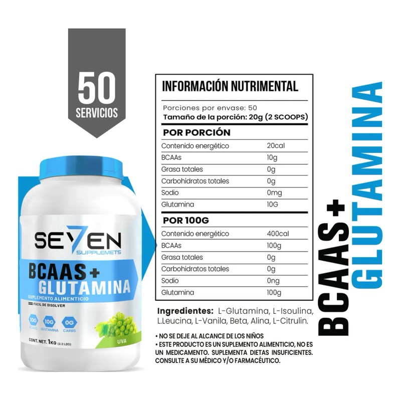 ¡Eleva Tu Rendimiento con Aminoácidos Seven BCAAs + Glutamina! 🍇💪