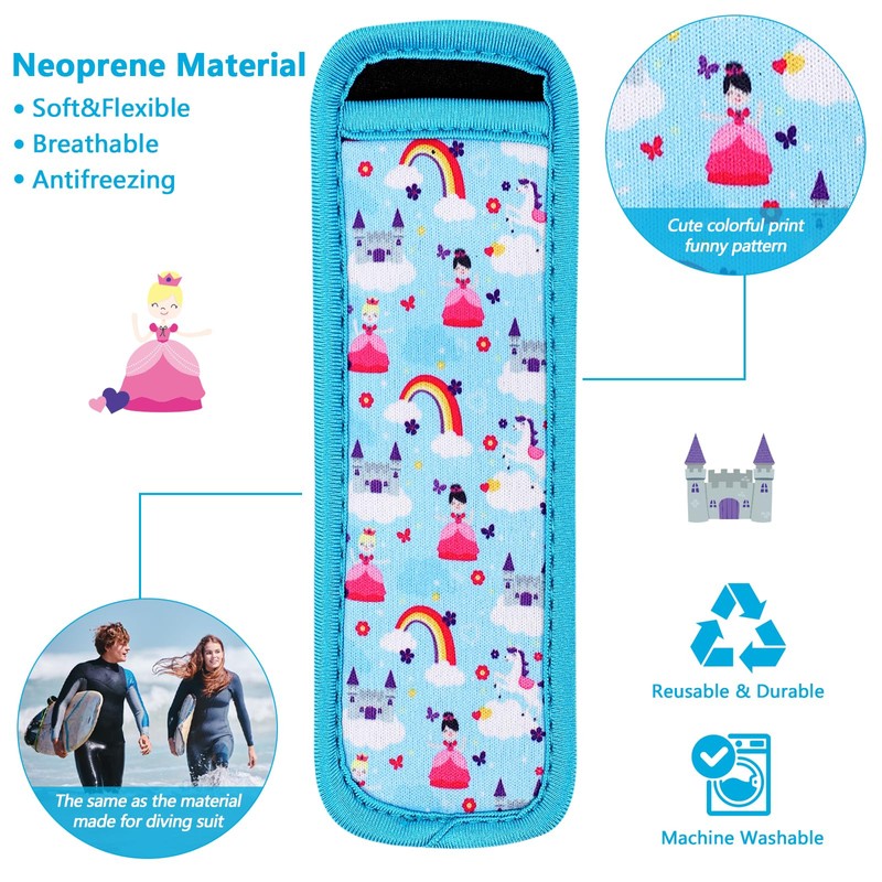 Amintiri Kids Neoprene Ice Pop Holder - 6 Piece Reusable Insulator Sleeves, Cute Freeze Pops Sleeves