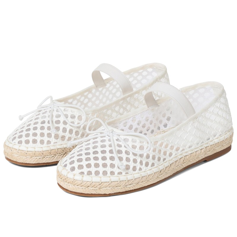 AMINUGAL Mesh Ballet Flats Shoes for Women Round Toe Platform Mary Janes Elastic Espadrilles White Mesh Dressy Comfortable Ballerina Size 5.5