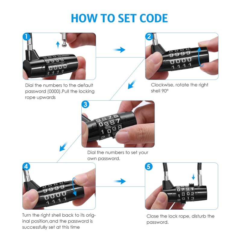 - Easy to Use: The resettable padlock features a simple 4-digit combination that’s easy to set and remember. You can customize your own code for added security. With clear instructions, locking and unlocking the padlock is quick and effortless