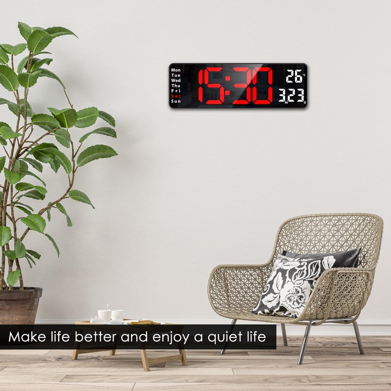 - 🔥Upgraded 13“ Remotely Operated Wall Clock- The multifunctional digital wall clock can be set by the button, but also equipped with a remote control, 10M range can easily use the remote control clock, 13-inch large screen time, date, day, temperature on the same screen display, 3.5-inch high-definition giant digital, no matter how far away you can easily read.