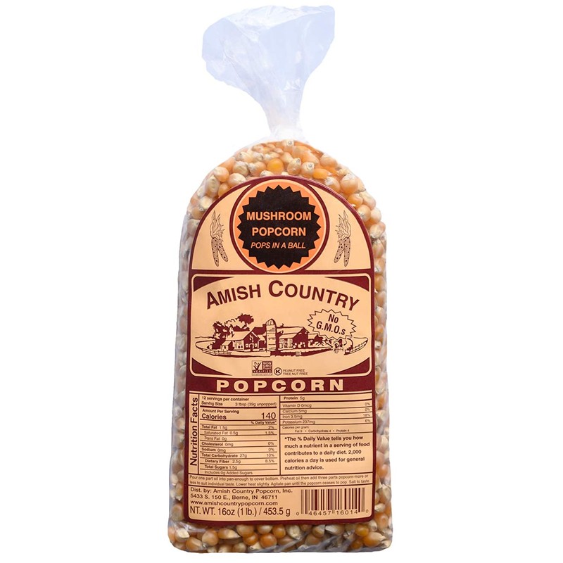 • 1 LB OF MUSHROOM POPCORN KERNELS - This delicious, gourmet popcorn is made in the heart of Amish country.