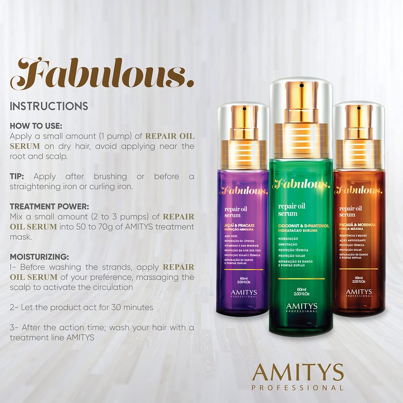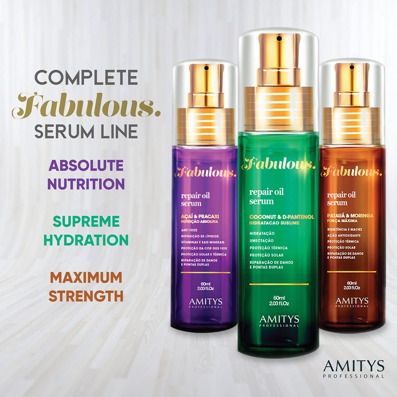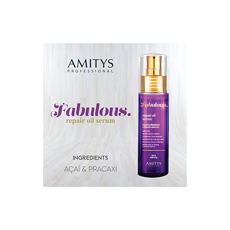 Amitys Professional Amitys Fabulous Serum A?ai & Pracaxi Oil Absolute Nutrition 60ml, Vitamins and minerals reposition, Reduces Frizz, Color Protection, Absolute Nutrition for Damaged hair strands
