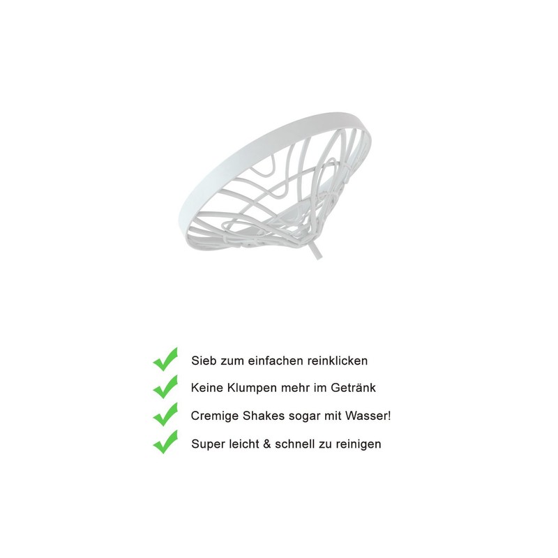 - Extra strainer for creamy shakes: Thanks to the click-in strainer, you can enjoy lump-free shakes from now on. No annoying stirring or long mixing is required with our shaker. Enjoy your creamy protein shakes after just a few seconds of shaking.