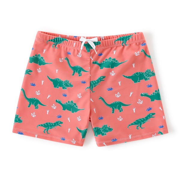 AMIYAN Boys Swim Trunks with Brief Liner Compression Swimming Shorts Stretchy Quick Dry Swimsuit Orange Dinosuar M 2-3T