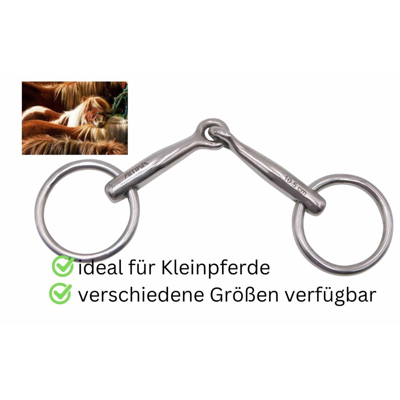 AMKA Pony Snaffle Bit Stainless Steel Thickness 10 mm Rings 40 mm 8.5-9.5-10.5 cm