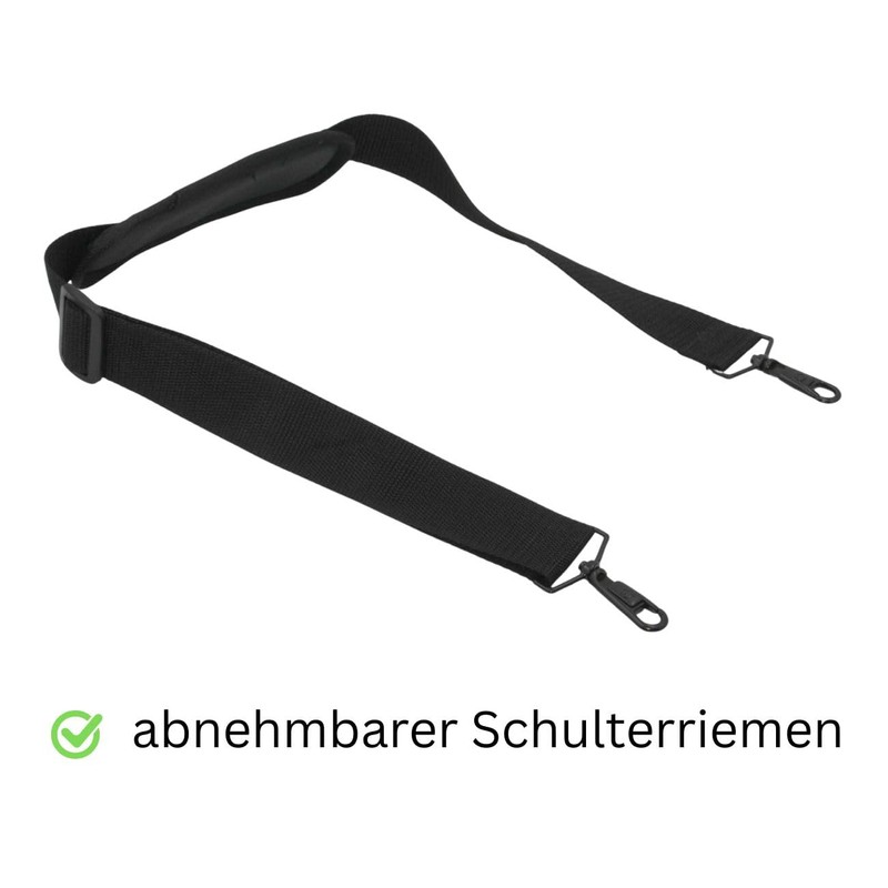 - PRAKTISCH ZU TRAGEN: Mit abnehmbarem Schultergurt und stabilem, gepolsterten Tragegriff für komfortables und sicheres Handling - Zusätzlich mit 2 abnehmbaren Nylonriemen, mit stabilen Karabinern zur Befestigung an Box, Hänger, Auto usw.