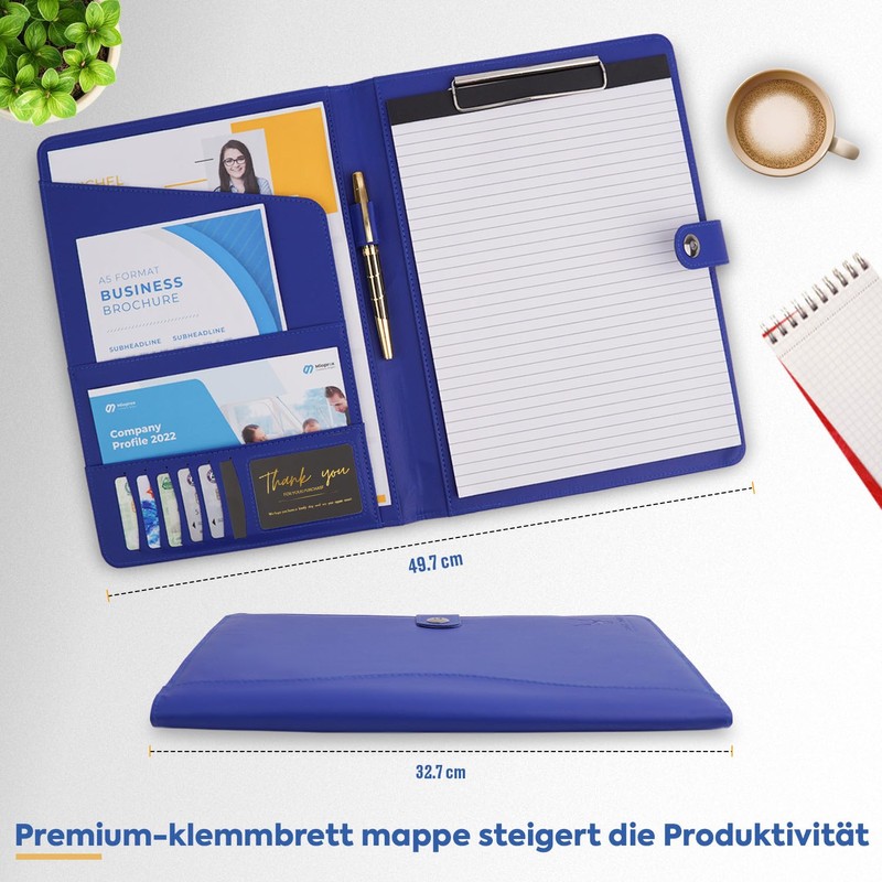 - DURABLE COMPANION The elegant clipboard folder a4 is made of high quality and durable PU leather with precise stitching. The sturdy inner material ensures a perfect writing experience. A notepad with 20 sheets is included