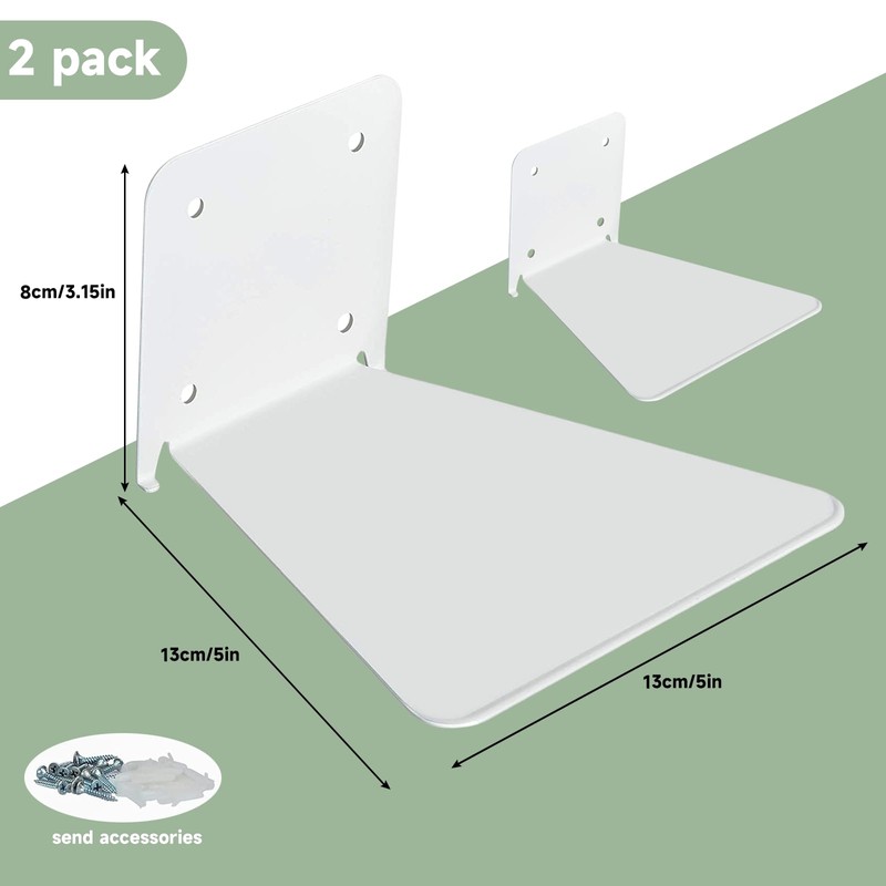 • 2-piece set with super load capacity: we offer a 2-piece set of shelves, each of which has a super load capacity and can hold more books to perfectly display your reading collection. The floating shelves made of metal plate with smooth, white, matte surface can carry a weight of 25 pounds according to our safety test.