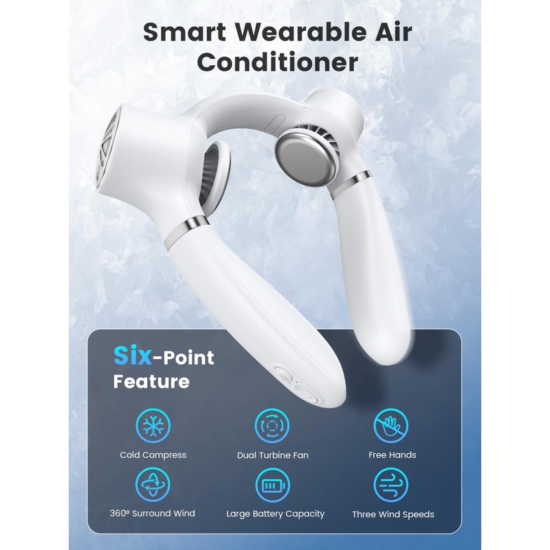 - 【Ergonomic Design& Safe Bladeless Fan】The neck air conditioner fan naturally and comfortably fits any neck, with a skin-friendly silicone surface that feels soft against your skin. It provides continuous comfort, whether you're running or engaging in high-intensity activities. The bladeless and hands-free design frees up your hands, allowing you to do more things.