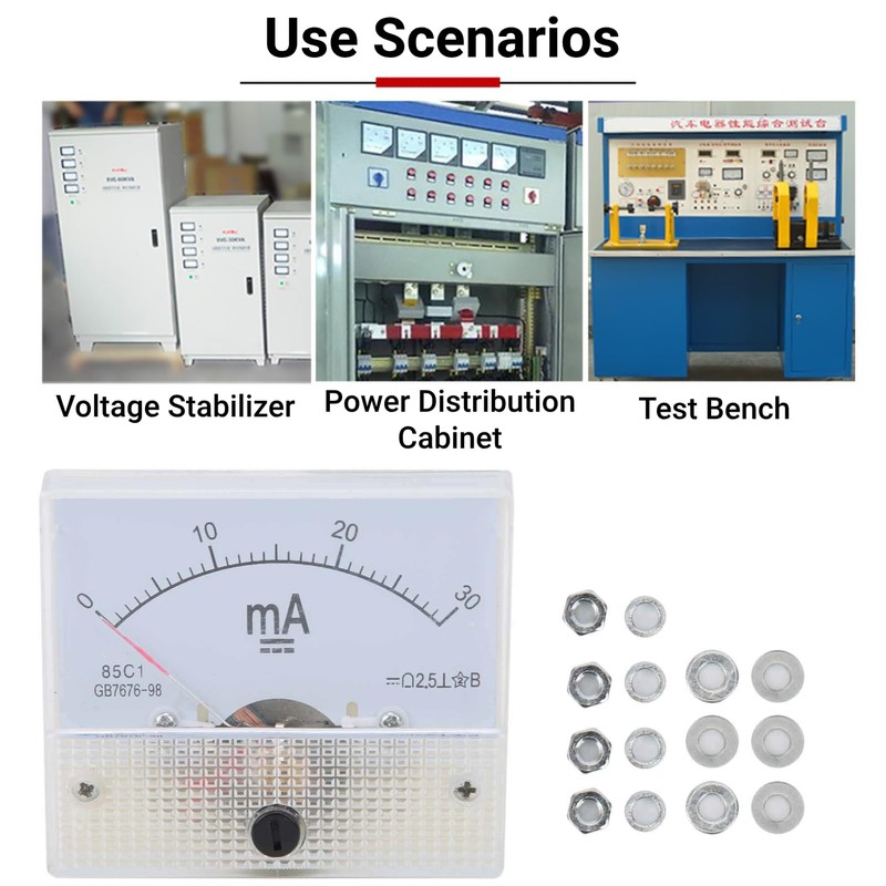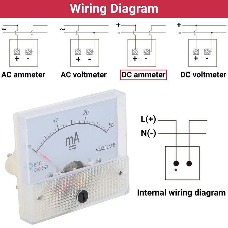 - 【Pointer Dial】The scale of this DC ammeter is clear. The dial uses silk printing technology, black characters on a white background and a red hand for easy reading