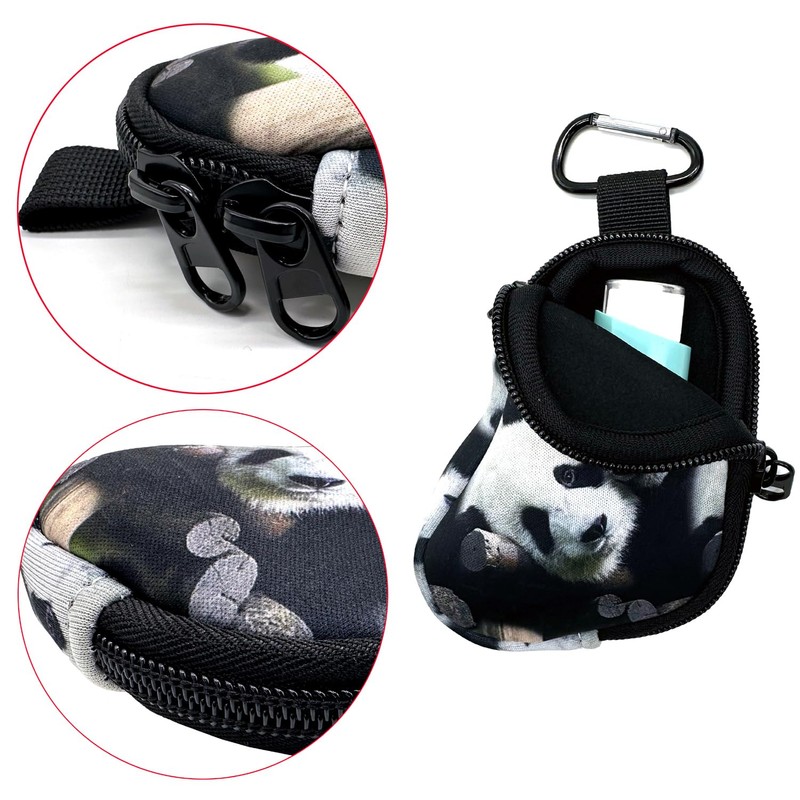 AMMKRO Neoprene Asthma Inhaler Holder, Protective Portable Travel Handy Holster, Lightweight Carrying Case with Carabiner Clip, Inhaler Not Included (Panda)