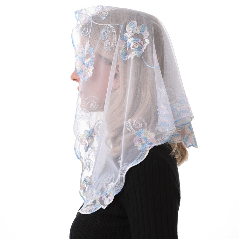 Ammmscaf - Velo capilla de encaje católico, masa, bordado para cubrir la cabeza, velo de iglesia, multicolor2, 37.5" across by 19.7"