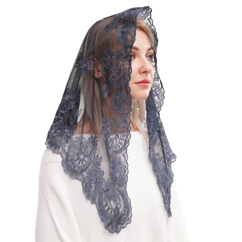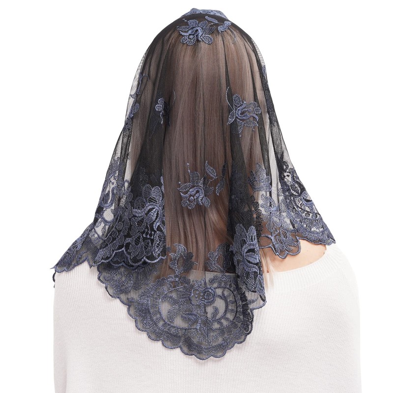 Ammmscaf Velos triangulares de encaje Mantilla para cubrir la cabeza, velos de iglesia católica, Azul