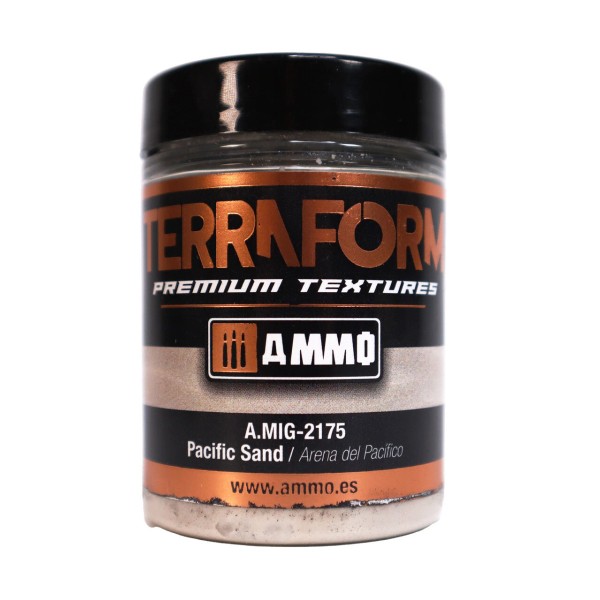 With this new acrylic formulation made with natural minerals, AMMO has enabled you to authentically recreate the texture of Pacific sand. With the characteristic practically white and uniform tone, the extra fine finish and texture is ideal for application to any Pacific beach. This product allows you to create realistically unparalleled groundwork for your small scenes and dioramas. Stir the product well and apply directly from the large jar. 100 ml canister. Non-toxic and odourless product. Thin and clean with water. Dries completely within 24 hours and can be mixed with other similar products from our range of textures. Suitable for any scale from 1/16 to 1/48. If the result is too grainy, just let dry and sand to the desired texture.