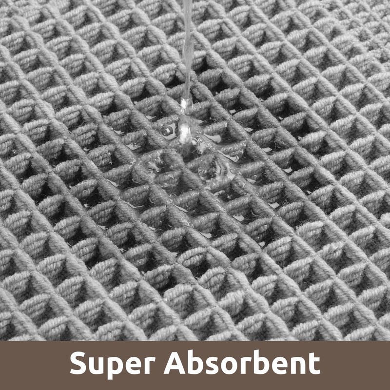 - [Super Absorbent Bath Mat] The super absorbent upgraded yarn and unique waffle texture make our long bathroom rug runner able to continuously absorb moisture like a sponge. These bath rugs non slip washable can soak up the water and prevent water seepage, keeping the floor dry at all times and protecting your feet from cold floor.