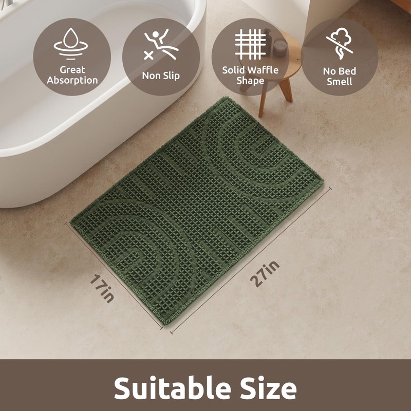 - Super Absorbent: Unique waffle bath mats with double-layer absorbent water quickly when you step out of the shower or bathtub, effectively keeping the floor dry. Bathroom rugs with three-dimensional waffle structure improves water absorption, speeds up air circulation and helps the bath rugs dry faster, suitable for daily household use.