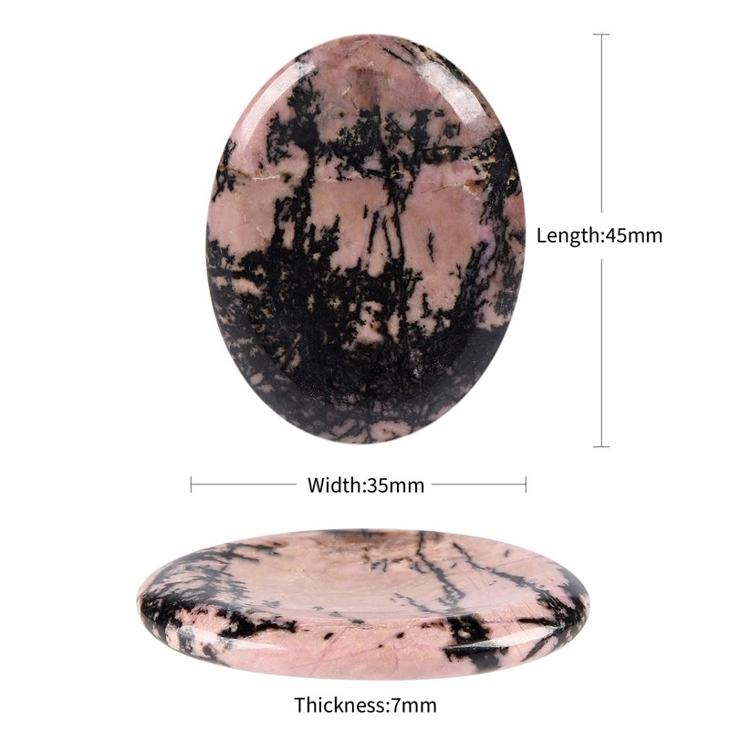 Amogeeli 2pcs Oval Thumb Worry Crystal for Stress and Anxiety, Polished Palm Pocket Stone for Meditation, Rhodonite, 1.77 Inches