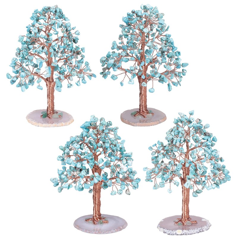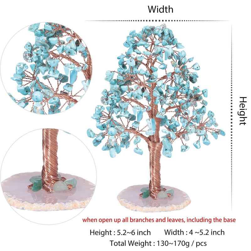 - Handmade Green Howlite Turquoise Tree: Using green howlite turquoise chips as tree leaves, flexible copper wires as tree branches, trunk and roots, and a polished agate slice as ground, each tree is handmade by our artisan. To ensure packing, the tree will be folded in a paper box. After receiving it, you can rearrange the branches and leaves to achieve their true beauty.