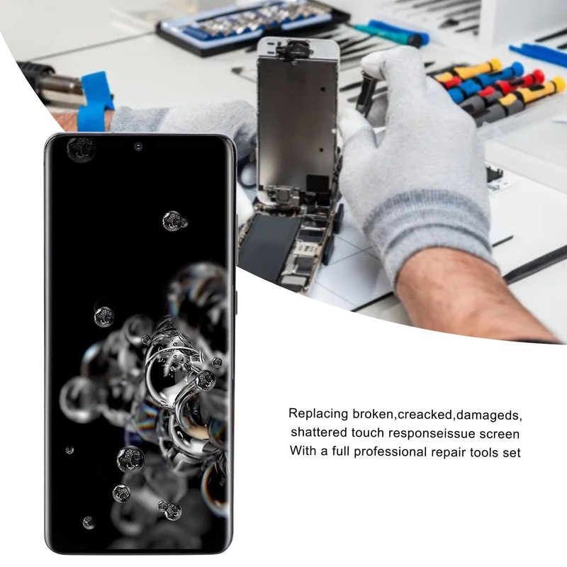- Repair Tool Kit: Used to replace the defective display touch screen digitizer assembly for Galaxy S20 Ultra. Ideal choice for replacing the original screen in case of incorrect screen response, display issues, unresponsiveness, touch response problems, screen damage, incorrect colors, screen aging or death, screen malfunction, etc.