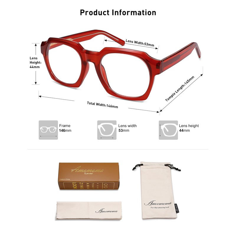 - MEASUREMENT- Lens width-53mm(2.09’’), Lens height-45mm(1.77’’), Bridge-21mm(0.83’’), Frame width-146mm(5.75’’), Frame length-145mm(5.71’).