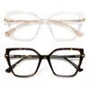 AMOMOMA 2PACK Trendy Square Blue Light Blocking Reading Glasses for Women Women's Readers Spring Hinge AM6082 C1+C5 1.5 x