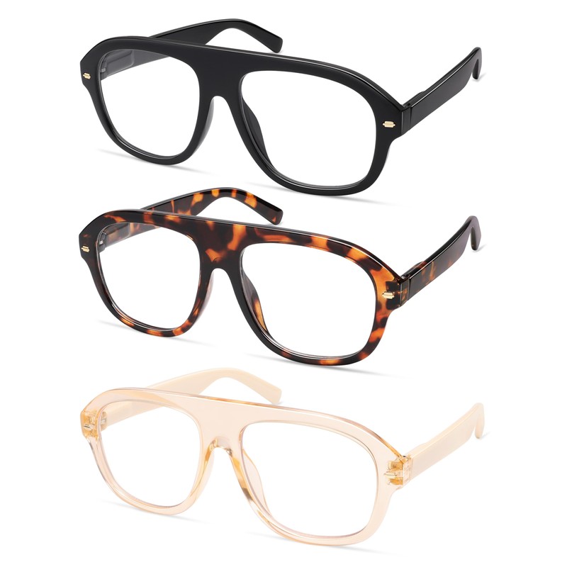 AMOMOMA 3 Pack Retro Blue Light Aviator Reading Glasses for Women Men,Oversized Large Computer Reader Frame AM6163 C1+C2+C4 1.0 X
