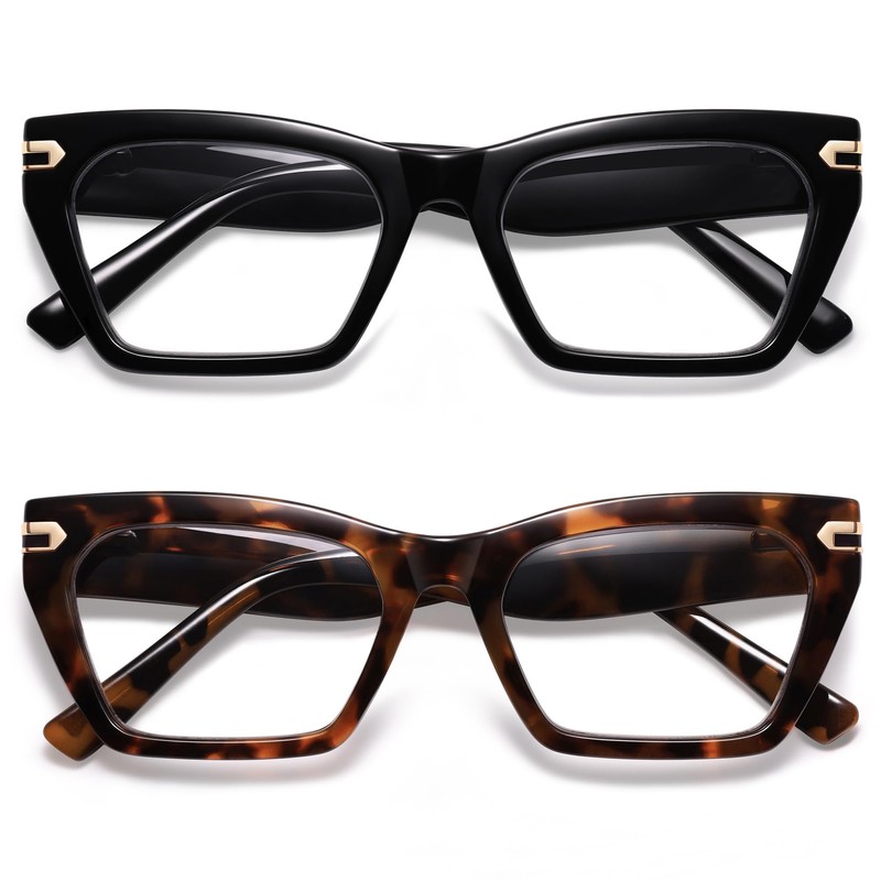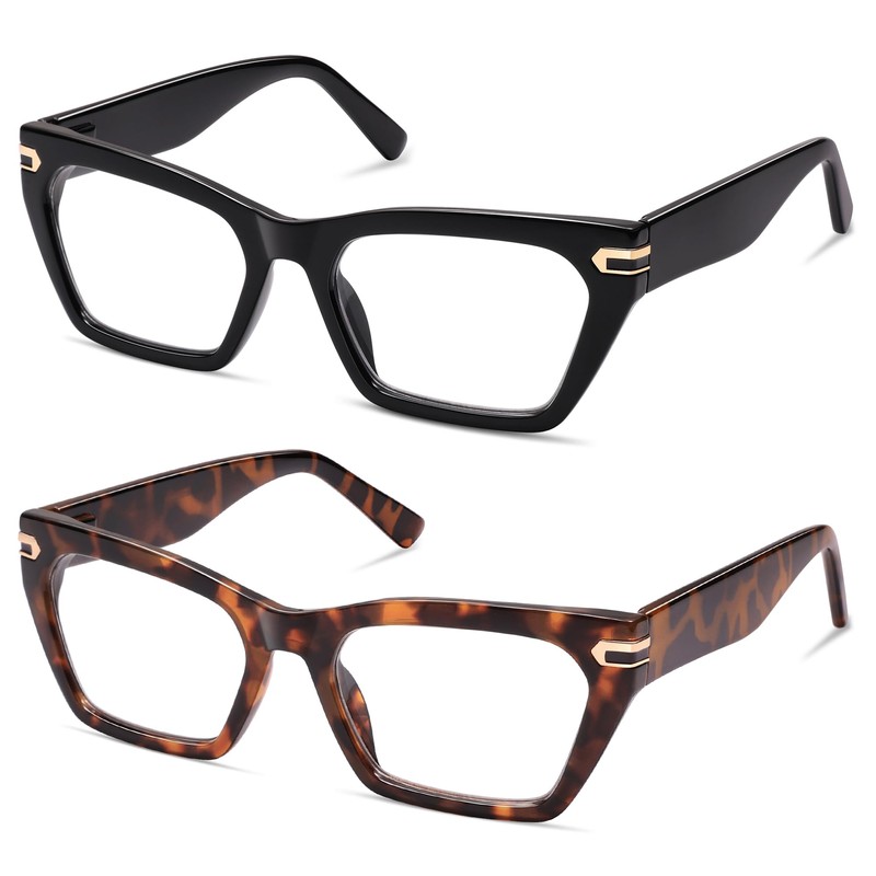 AMOMOMA Oversized Cat eye Reading Glasses for Women,Men Blue Light Blocking Computer Readers Spring hinge AM6148C1+C2 2.5