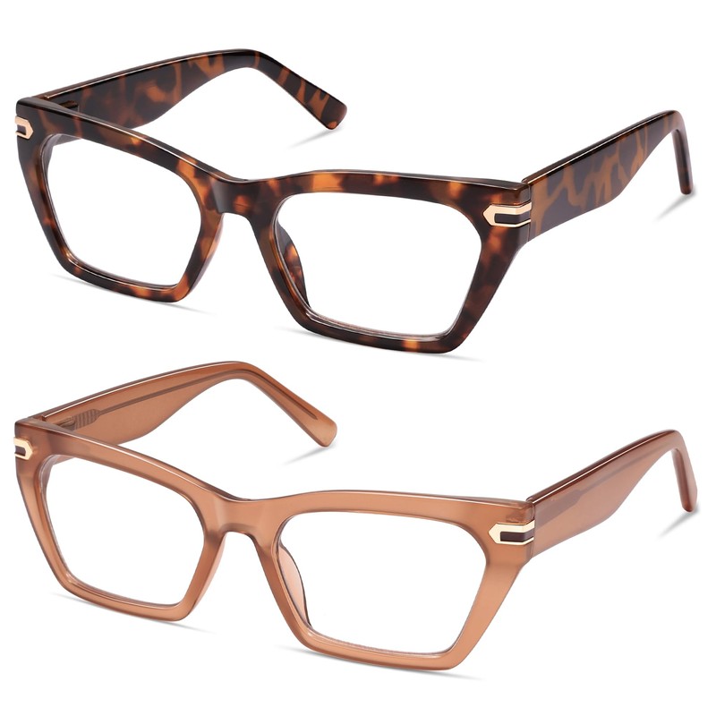AMOMOMA Oversized Cat eye Reading Glasses for Women,Men Blue Light Blocking Computer Readers Spring hinge AM6148C2+C3 2.0