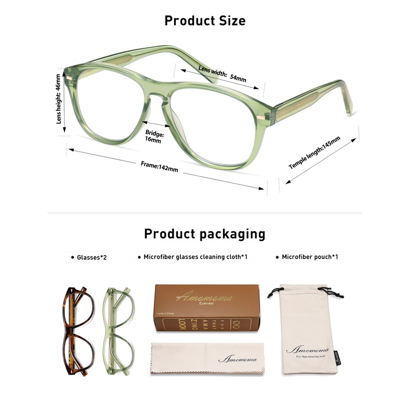 • PACKAGE –Blue light blocking reading glasses*2, microfiber glasses cleaning cloth*1, leather case*1, beautifully designed box*1