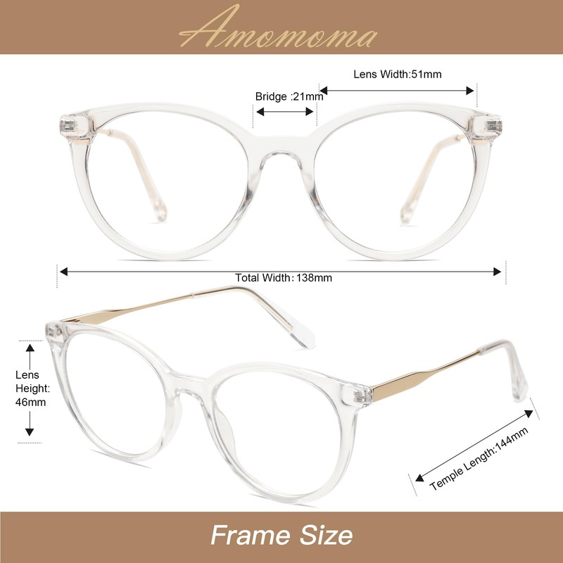 - 【STYLISH ROUND FRAME】Stylish round front shape and lovely colors will go with various types of outfits. Lens Width: 51mm, Lens Height: 45mm, Temple Length: 138mm, Nose Bridge: 20mm.