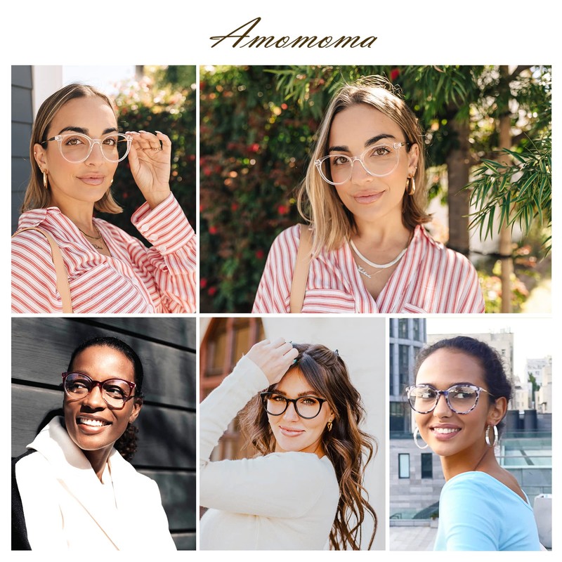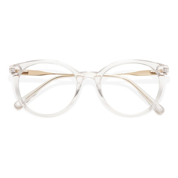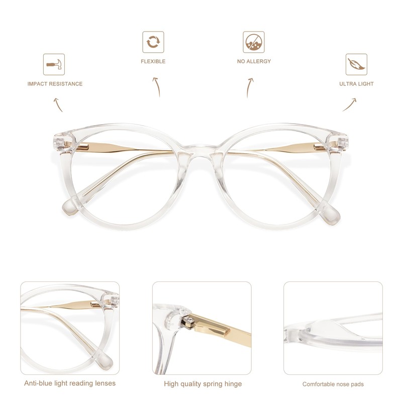AMOMOMA Retro Round Reading Glasses for Women Cute Stylish Blue Light Blocking Readers AM6055, Clear/Gold 0.00x