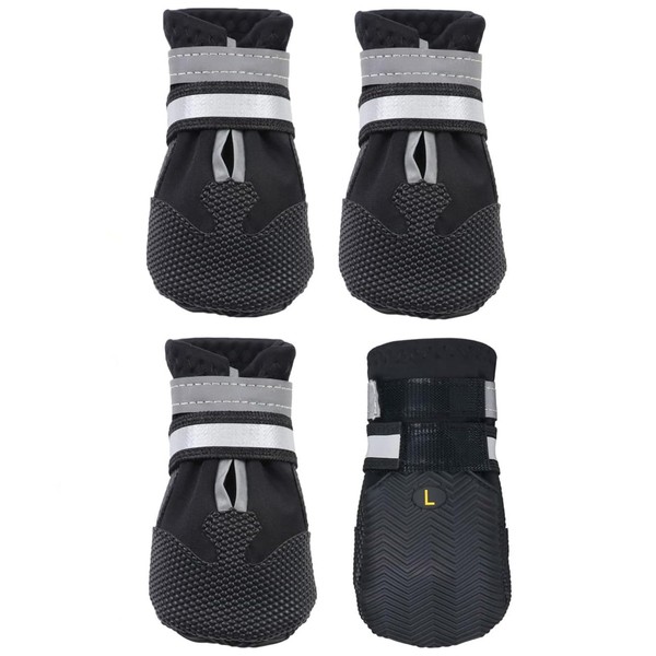 AMOMYDOG Dog Shoes, Pack of 4 Breathable Dog Shoes Outdoor with Non-Slip Sole, Adjustable Reflective Velcro Dog Boots for Small, Medium and Large Dogs (Black, XL)