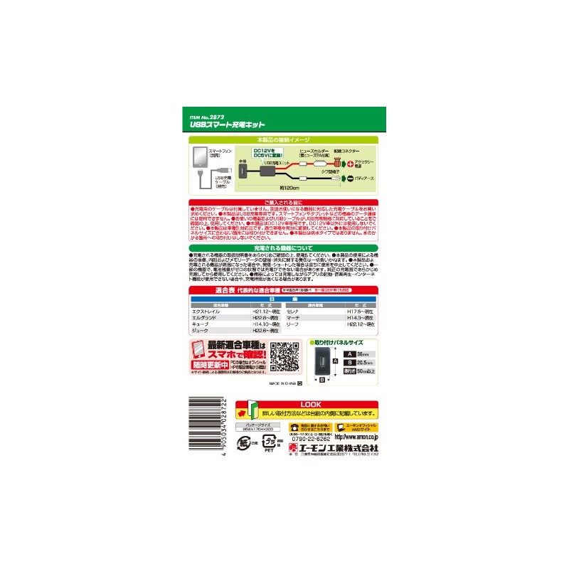 amon USB smart charging kit (for NISSAN vehicles) 2872