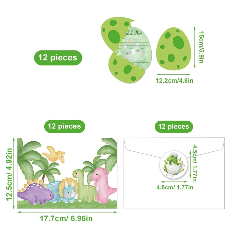 - Small dinosaur invitation: you will receive 12 dinosaur children's birthdays, including 12 envelopes, 12 invitation cards and 12 stickers