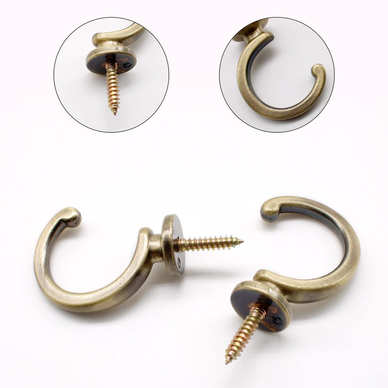 - Standard: total length is 6.9 cm / 2.71 inches, screw part is 2 cm / 0.78 inches and hook diameter is 3.2 cm / 1.19 inches, with appropriate size curtains can be easily hung up.