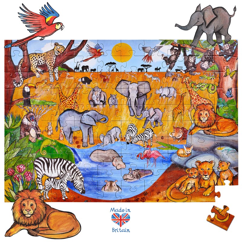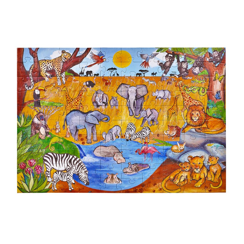 Amonev floor puzzles 100 pieces puzzles for both table and floor with easy to handle thick pieces making it a great gift for any occasion (Safari)